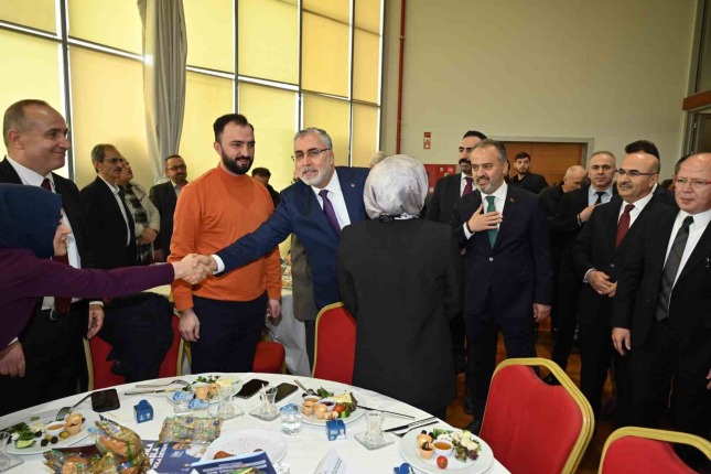 Çalışma ve Sosyal Güvenlik Bakanı Vedat Işıkhan’ın katılımıyla Atatürk Kongre Kültür Merkezi Yıldırım Bayezid Salonu’ndaki programa, sivil toplum kuruluşları ve hemşehri derneklerinin temsilcileri yoğun katılım gösterdi. Programa Bakan Işıkhan’ın yanı sıra Bursa Valisi Mahmut Demirtaş, Bursa Büyükşehir Belediye Başkanı Alinur Aktaş, Büyük Birlik Partisi Genel Başkan Yardımcısı Ekrem Alfatlı, AK Parti İl Başkanı Davut Gürkan, MHP İl Başkanı Muhammet Tekin, Bursa Ticaret Borsası Başkanı Özer Matlı, ilçe belediye başkanları, BTSO Başkanvekili İsmail Kuş, Esnaf Kefalet Üst Birlik Başkanı Bahri Şarlı, siyasi parti, sendika, kamu kurumları ve meslek odalarının temsilcileri de katıldı.