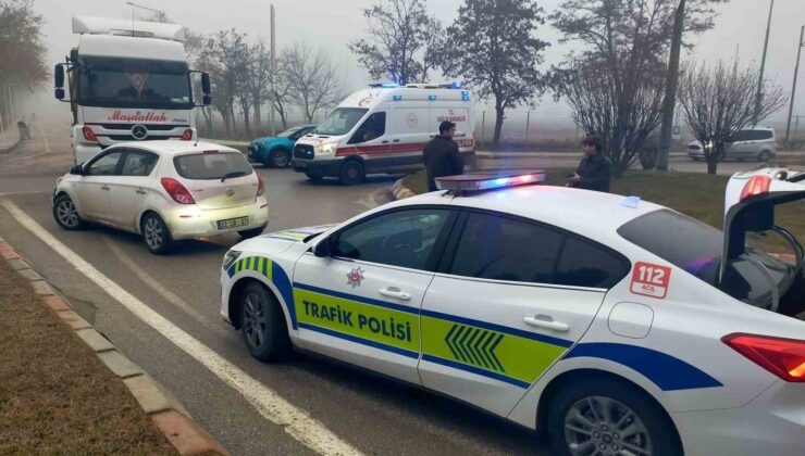Edirne’de kavşakta çarpışan kamyon ile otomobilde maddi hasar meydana geldi.