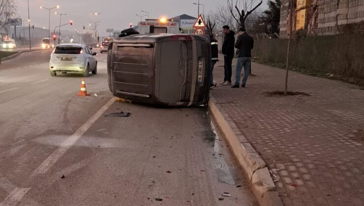 Bursa’nın İnegöl ilçesinde meydana gelen kazada otomobile çarpan hafif ticari araç devrildi, sürücüsü yaralandı.